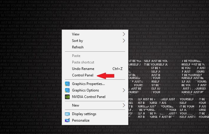 Now, to check your new control panel shortcut, go to your desktop and simply right-click.