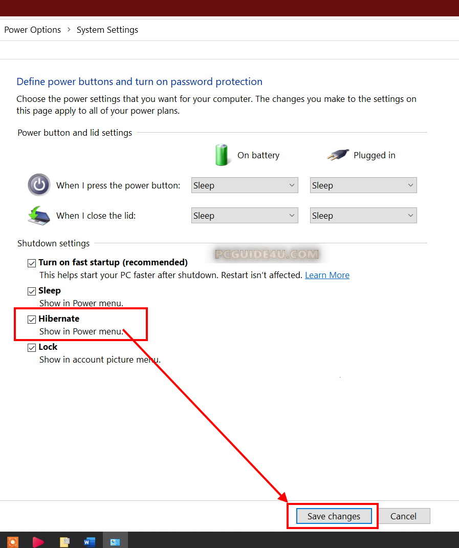After that, click the Hibernate checkbox and finally, click on Save changes button.