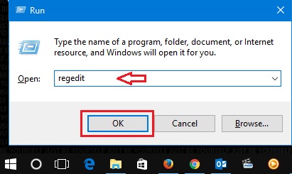 To open the registry editor, open the Run dialog box by using the keyboard combination Win + R, and type the command regedit and click on OK button.