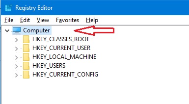 Step 2. To backup the whole registry, select the main context menu (i.e.: Computer, as shown in the image below).