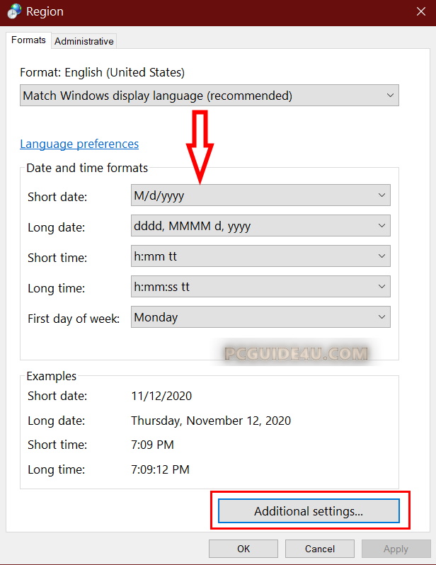 You can also click on Additional settings⦠to deep dive in to change the Number, Currency, Time and Date format settings of Windows 10 and Windows 11.