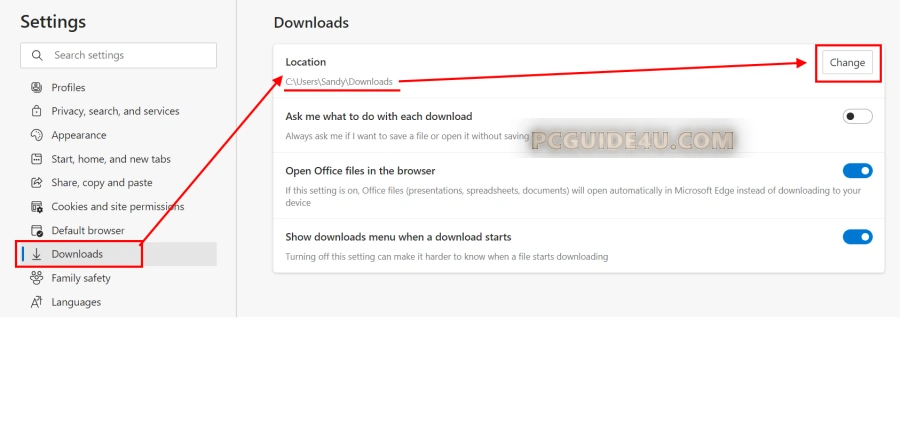 Most likely you are interested in changing your edge download location. By default, the download folder location of the Microsoft Edge browser is Downloads.