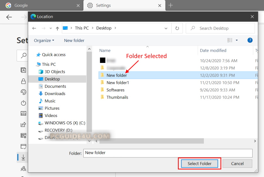 Step 3. A Select Folder or Location window will be prompted (depending on your browser version) to choose your preferred folder location.