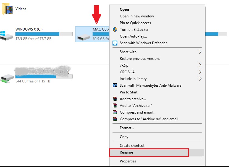 The first method is to modify the name hard drive partition is by doing from Rename with Context Menu