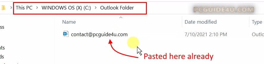 For example: We have created a new folder named Outlook Folder in the C drive and pasted the copied file.