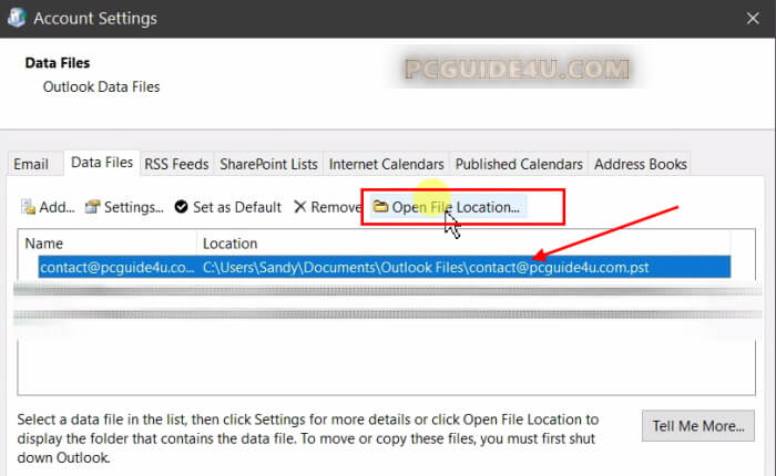 Change Outlook Data File Location to Different Location
