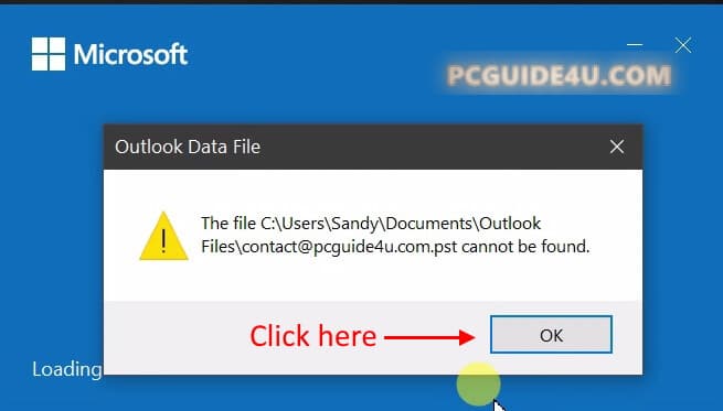 At the moment, if the outlook is loading the outlook profile, it will give you a message like .PST or .OST cannot be found. You need to click OK to continue.