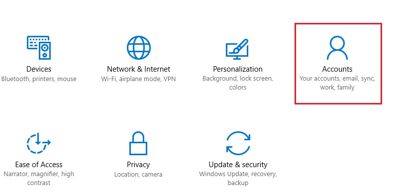 Step 2: Now, click Accounts.
