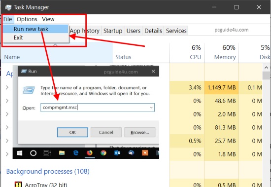 There are many ways to open the command prompt on a Windows PC. Open the Windows Command Prompt, once command prompt is open type, compmgmt.msc hit the Enter button.