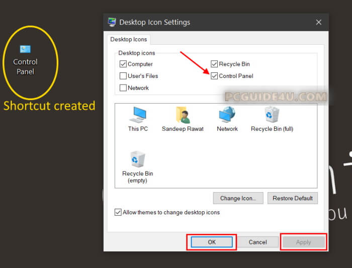 Add Control Panel to Desktop Icons