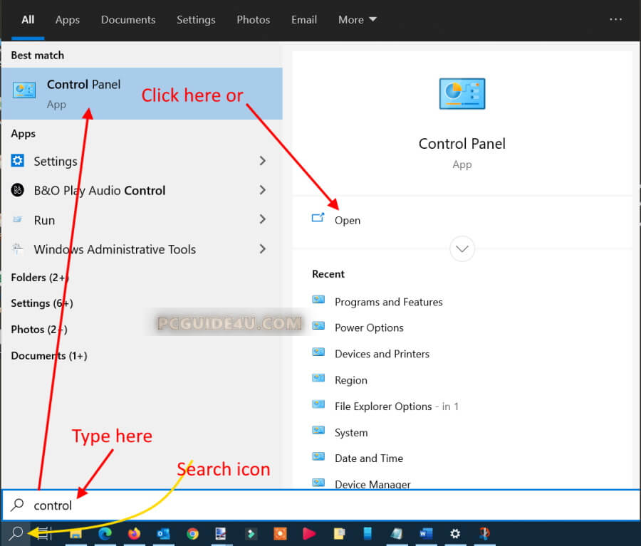 - Now click on the Control Panel as shown in the search result