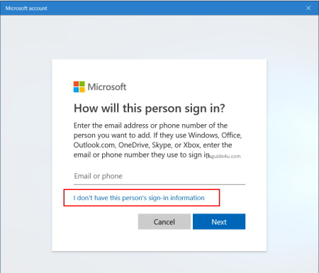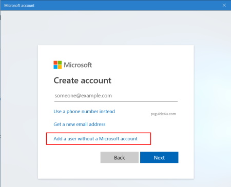 Step 4. In this screen, choose “Add a user without a Microsoft account”.