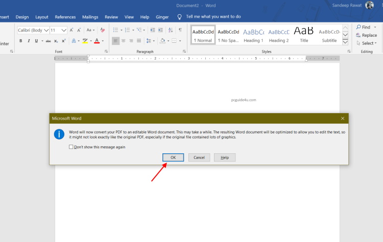 - Check out the message shown in the image given below. This is an informative message from Microsoft while opening a PDF file in Word. You must have to click OK to continue in order to open the file
