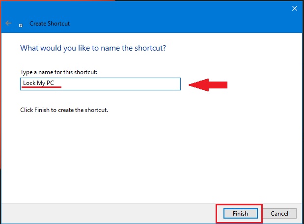 Example: Lock My PC as mine in the image below then click on Finish.