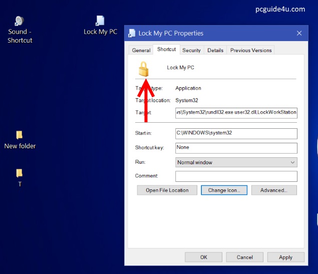 Assign an Icon to Lock My PC Shortcut