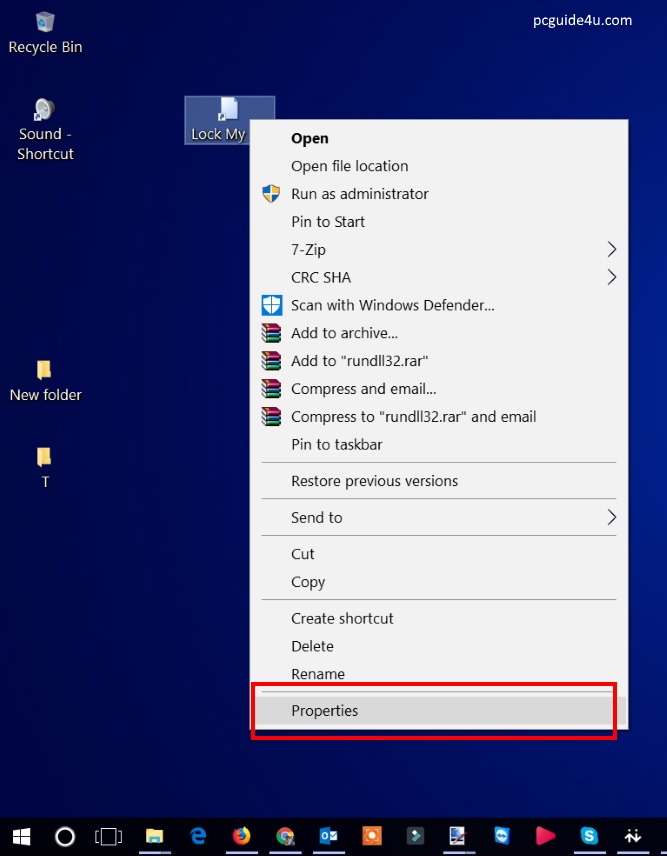 - Right-click on the created shortcut (Lock My PC) and select Properties