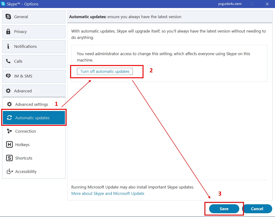 Update – The Automatic Update option has been removed from Skype version 7.41 or later.