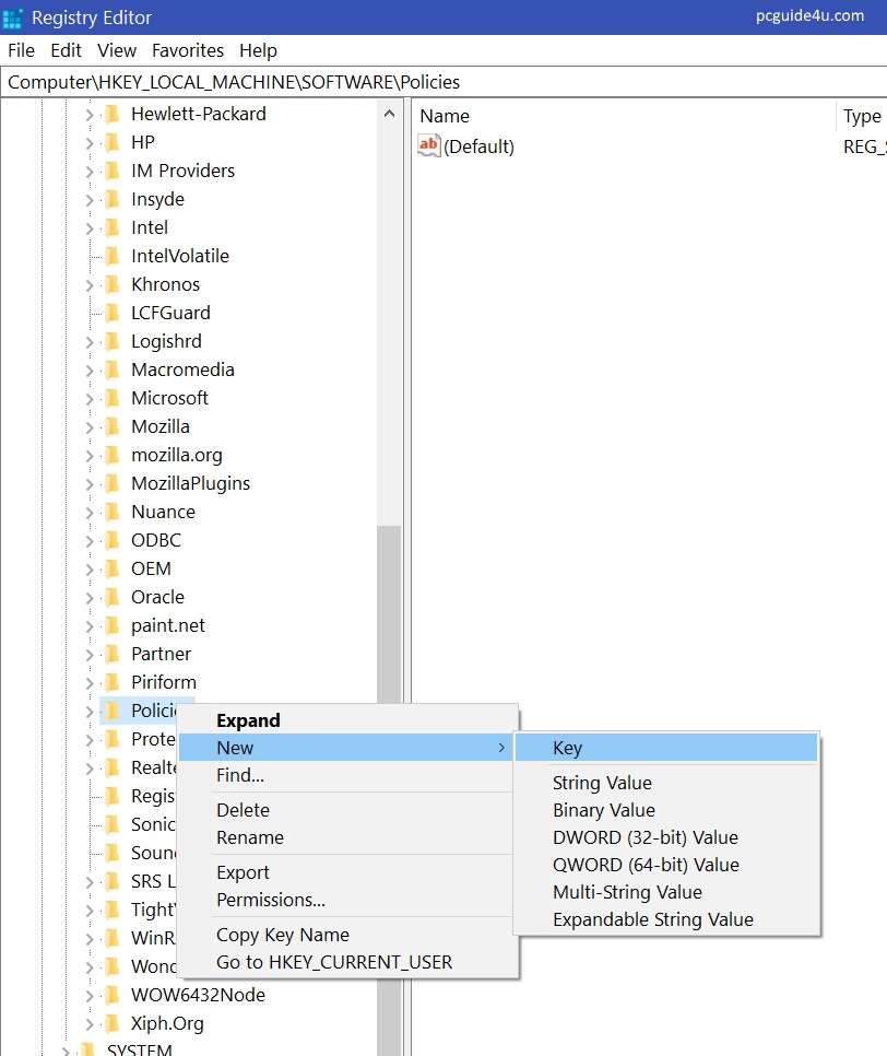 1) Once the Registry Editor opens, follow the given path: HKEY_LOCAL_MACHINE\SOFTWARE\Policies.