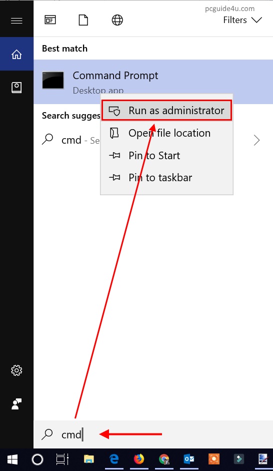- Now, open the command prompt as administrator.Go to Windows Search and type cmd. It will show you the search results, right-click on Command Prompt and select Run as administrator.