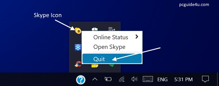 Note: For further steps we need to stop running Skype.