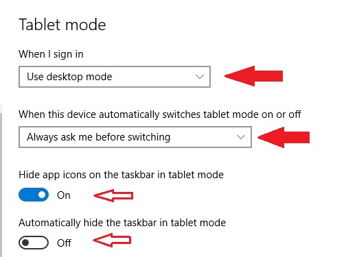 Tablet Mode Settings