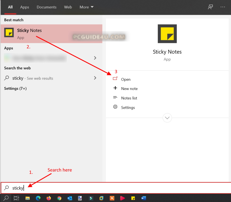 By using Windows search option, you can quickly and easily launch sticky notes.