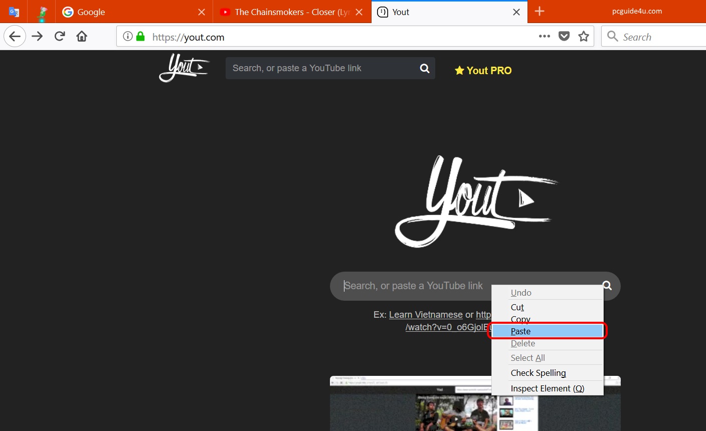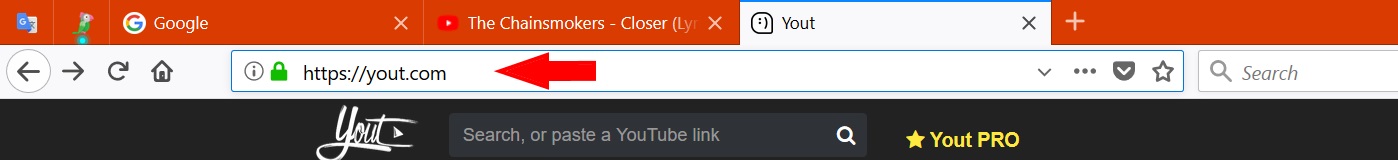 Step 3. Open another Tab on the same or any other browser, and open the website (https://yout.com/) by typing in the address bar and hitting enter.