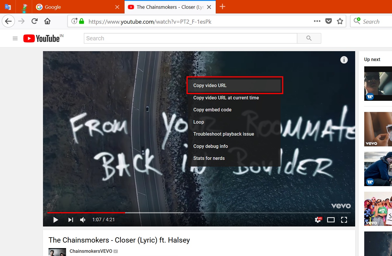 Step 2. Right-click on the played video and select Copy video URL. By doing this, you have copied the URL link of the selected video.