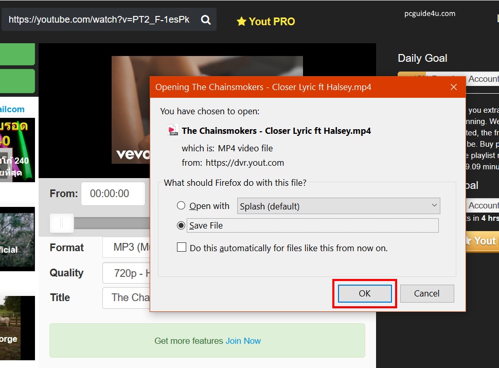 Click Save File. Your video will start downloading.