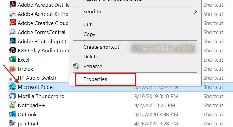 Step 1. We need to access Microsoft Edge browser shortcut properties. One of below option can help you with this: