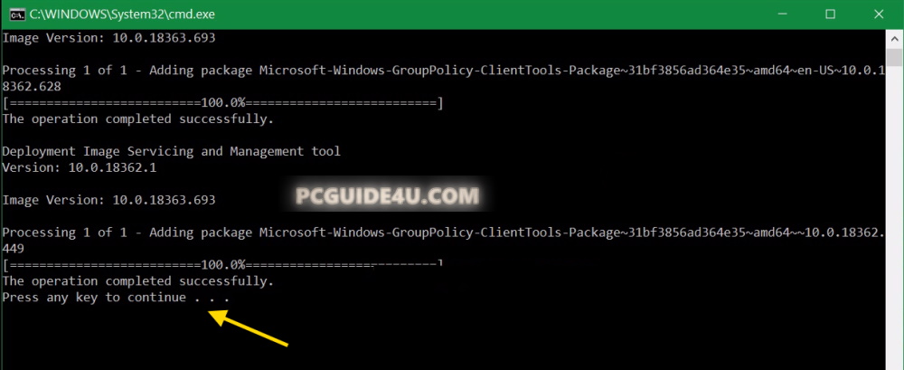 Finally, press any key from your keyboard to close this command prompt window. Check below image for reference: