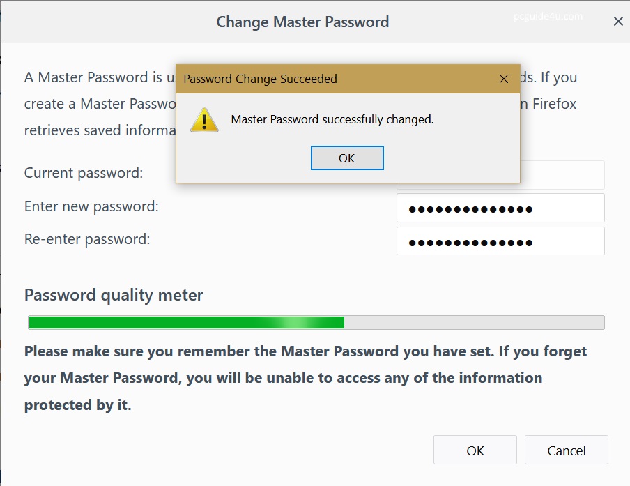 Note: Will recommend you to remember this master password you have set. If you forget your master password or primary password, you will not be able to access the information protected by it.