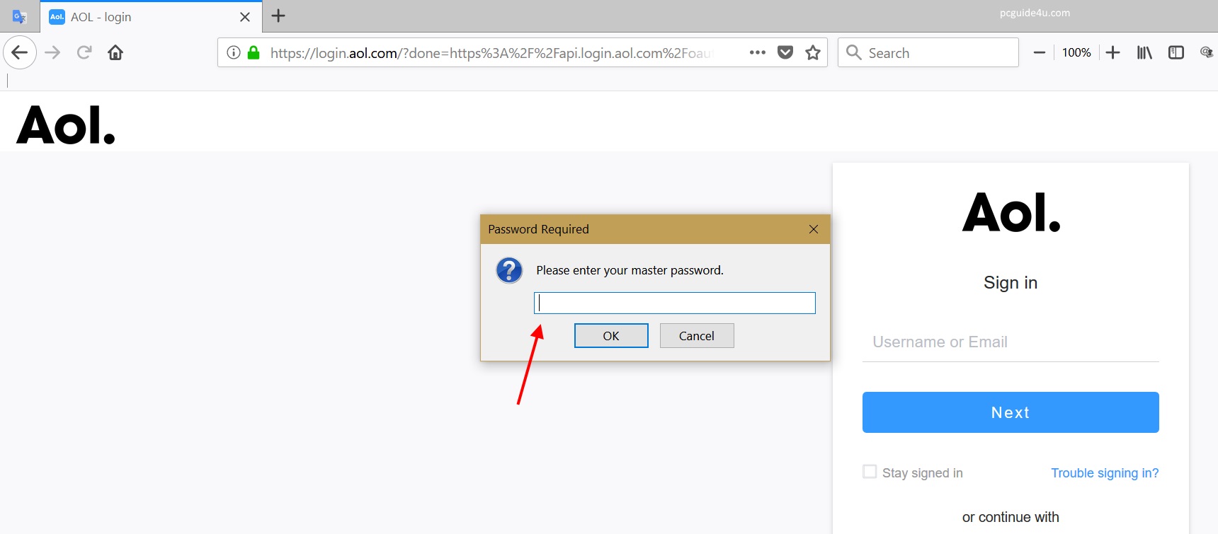 For example: I have saved my login credentials for my AOL email and now it’s asking for a master password when I open the AOL login page.