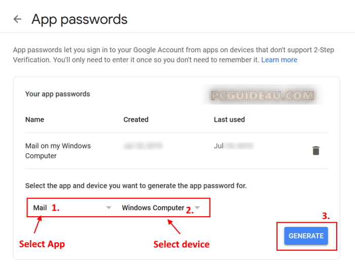 Note: To clarify, Google now requires you to enable 2-step verification in order to generate or create an app specific password to login third-party apps & devices.