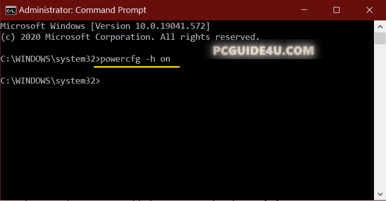 It will take quick second and above command will turn on the hibernate feature of your Windows. You can close the command prompt screen.
