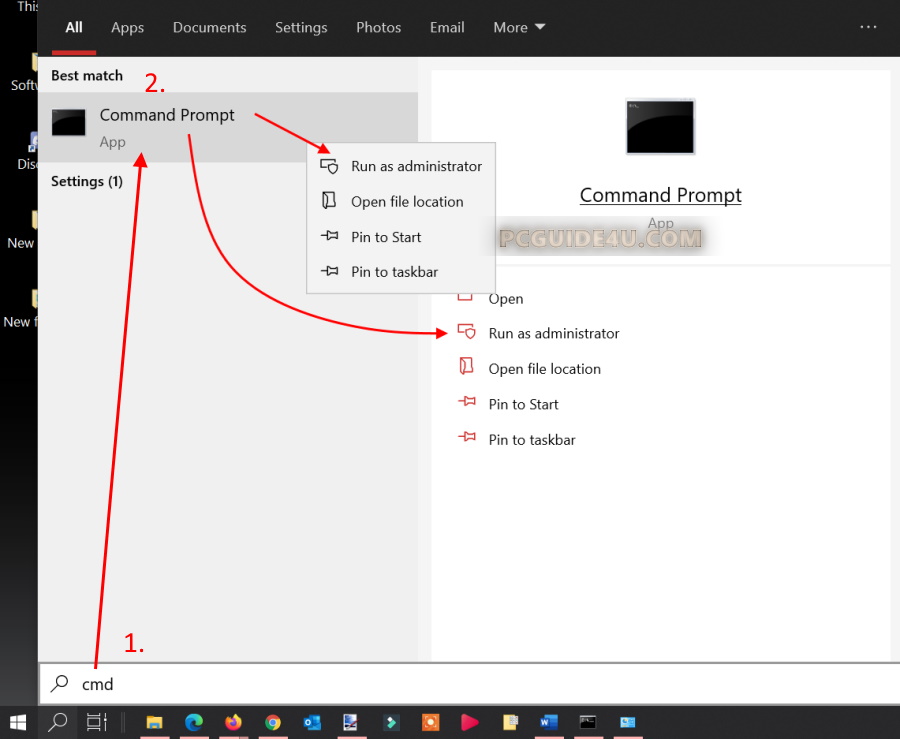 Step 1. Run command prompt as administrator as shown in step 1 above.