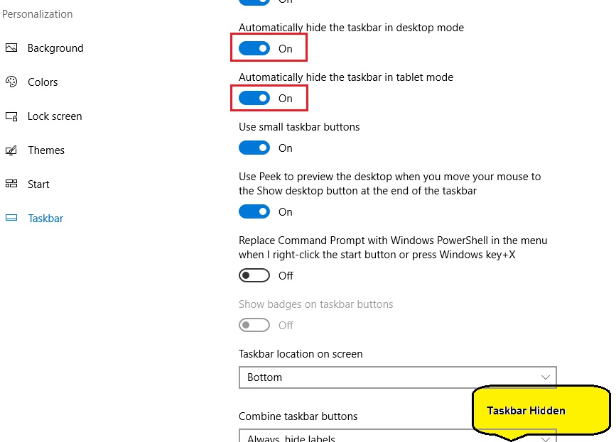 Settings to Auto-Hide Windows 10 Taskbar