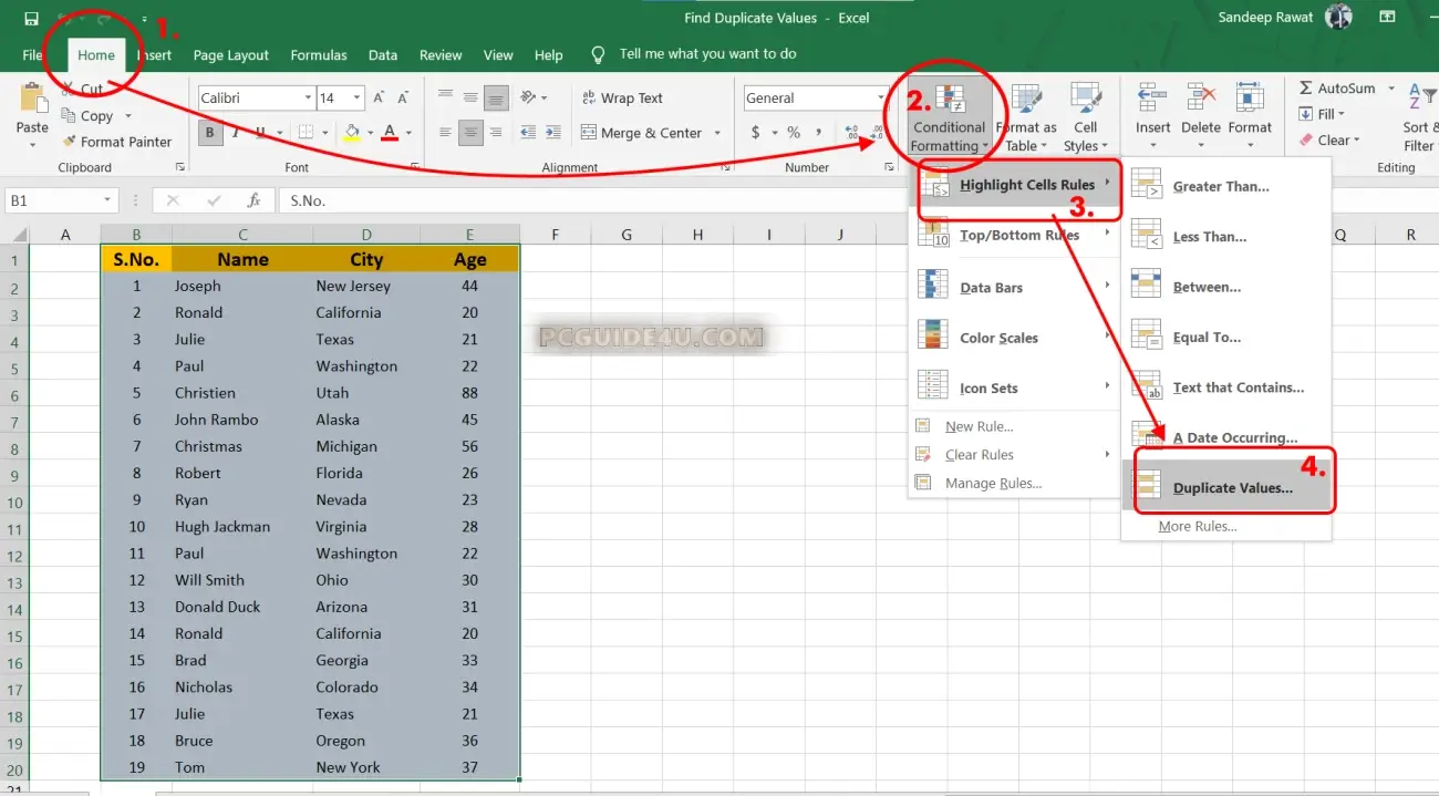Hereby, follow the steps given below to check the duplicate entries in an excel sheet.