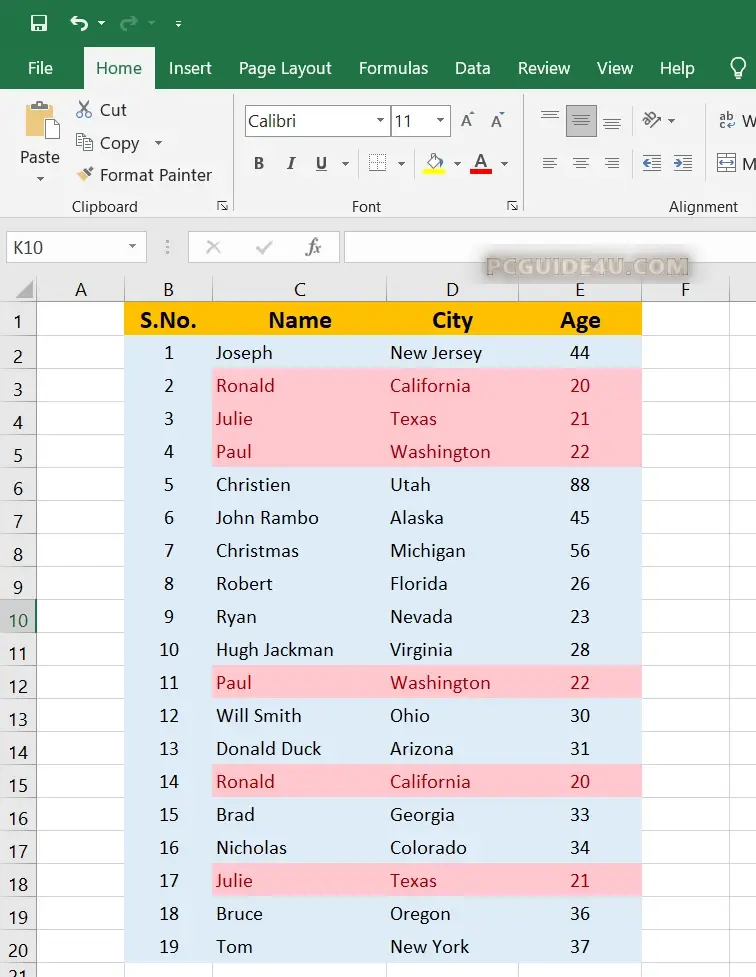 For instance, we have created a sample excel sheet which contains duplicate data values. Screenshot shown below belongs to the sample excel.
