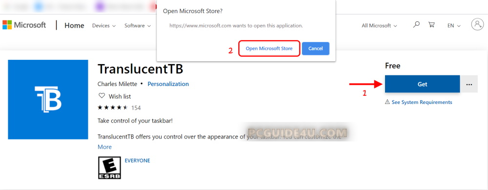Most likely, on the Microsoft Store, you will see TranslucentTB and Download button below that or the Get option to the right. Click again on Get and it will start downloading and installing the app to your Windows 10 OS.