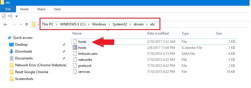 Open Windows Explorer and open the hosts file from the etc folder by following the path c:\windows\system32\drivers\etc\hosts.