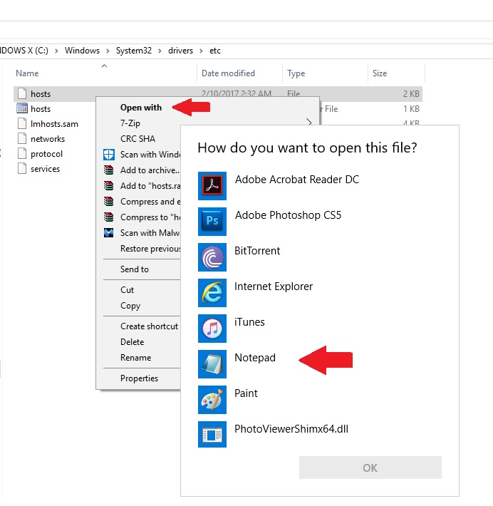 Now an option will appear and ask you to select an application to open the host file. You need to select Notepad.