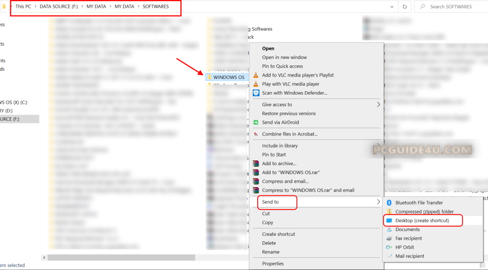 Step 1. Firstly, we will create a shortcut of existing folder to the desktop. Reach out to your folder location that you want to pin to the taskbar.