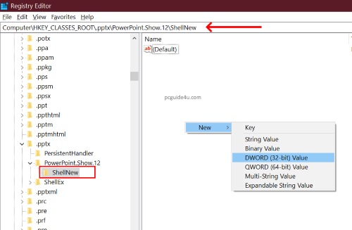 HKEY_CLASSES_ROOT\.pptx\PowerPoint.Show.12\ShellNew
