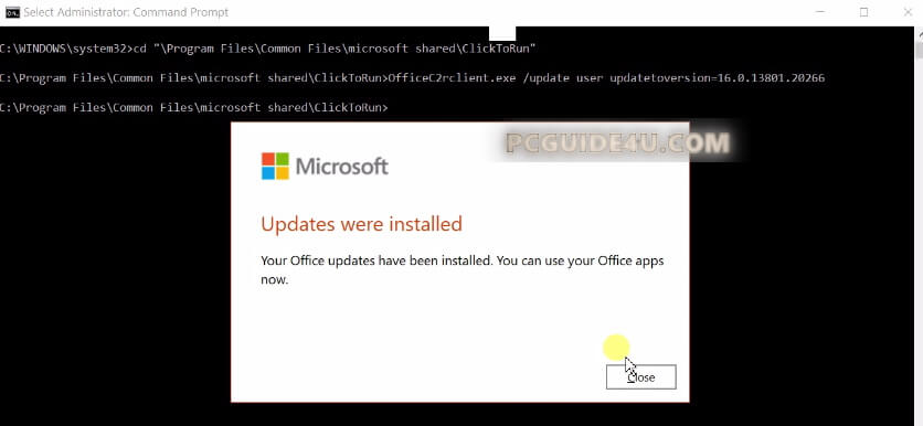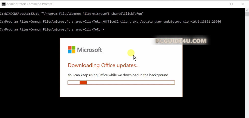 Step 4. The above commands will initiate the product update process and this may downgrade or upgrade your installed Microsoft office version