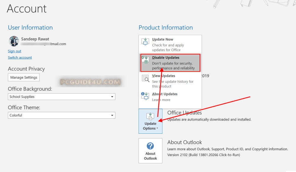 This is a very important and mandated task after you are done with the above process. We need to disable Office updates.