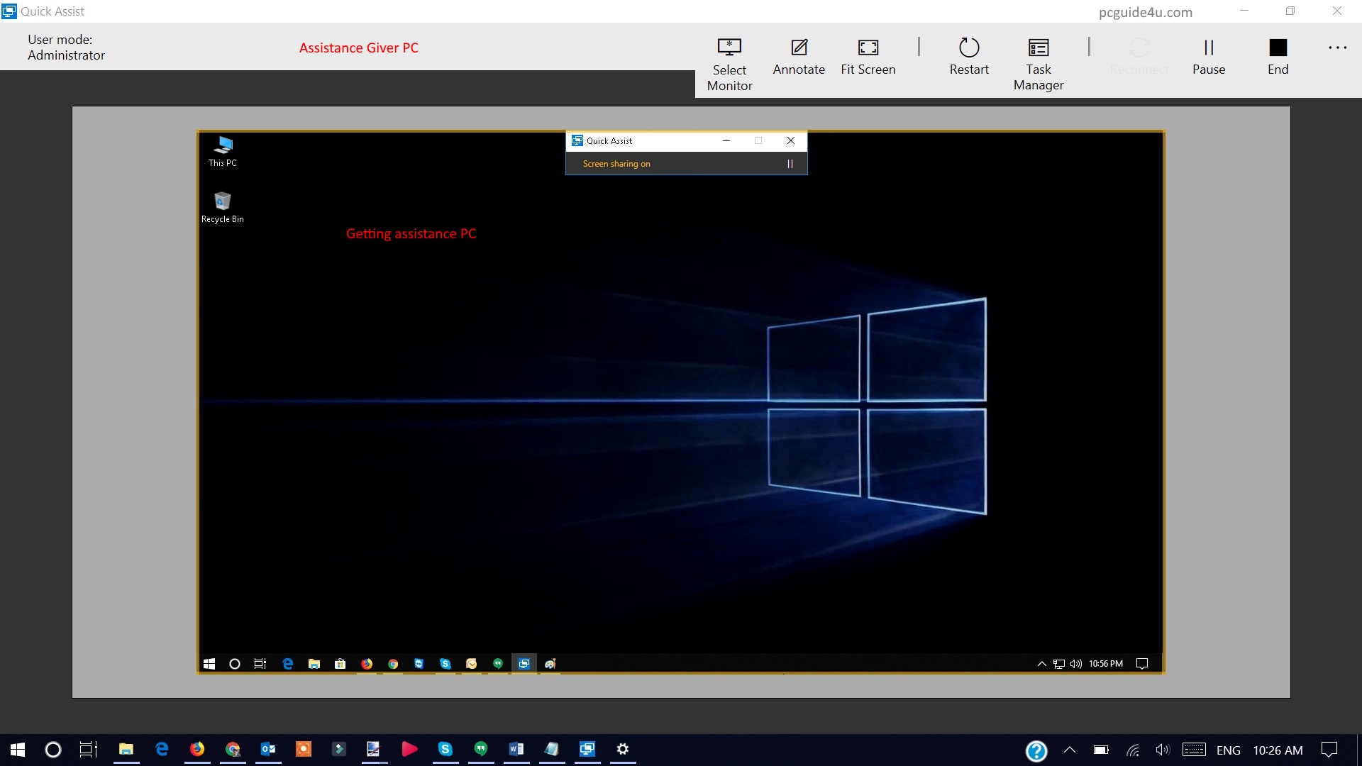 Step 3. We assume that we are providing assistance to someone and selected Give assistance on the Quick Assist app.