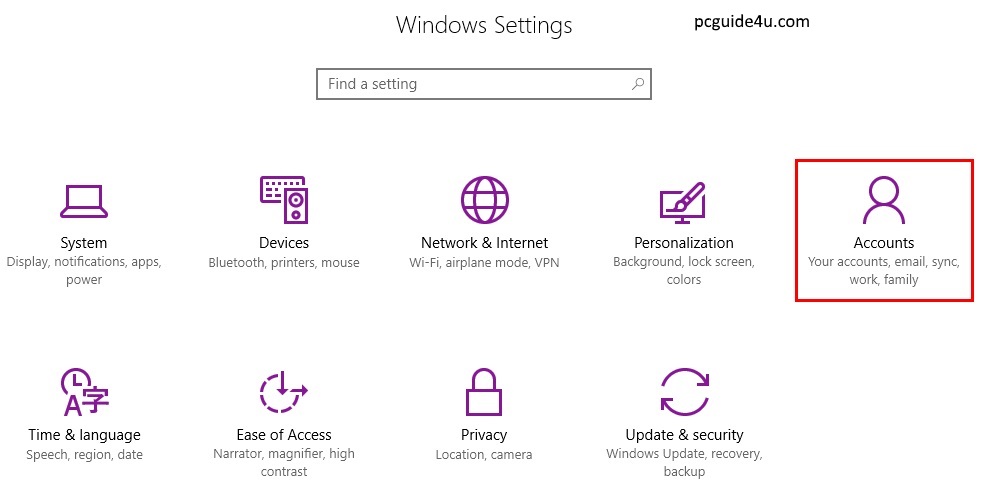 Step 2. In the Windows Settings App, Click Accounts