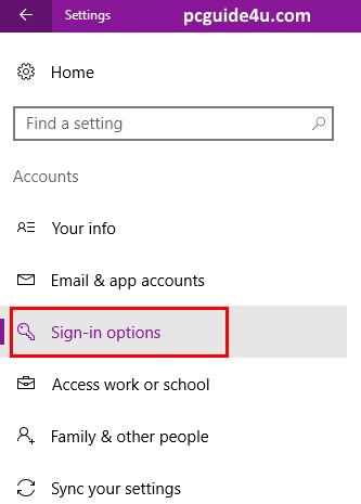 Step 3. Now in the left-side pane, select Sign-in Options.