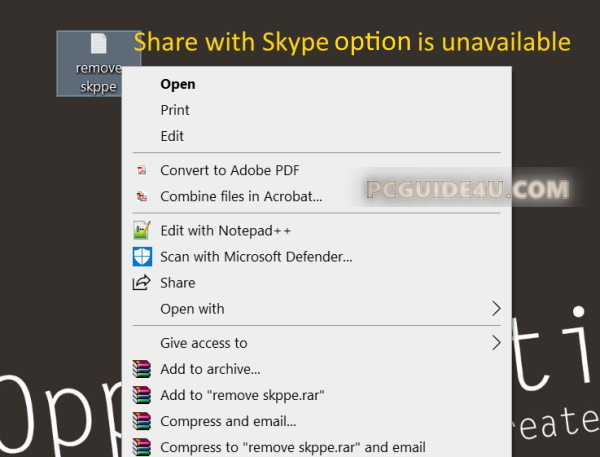 To check, now go back to any file and do a right-click. Share with Skype option is no longer available in the context menu.